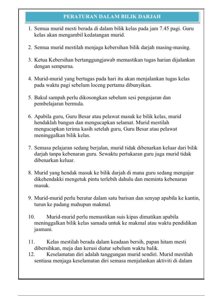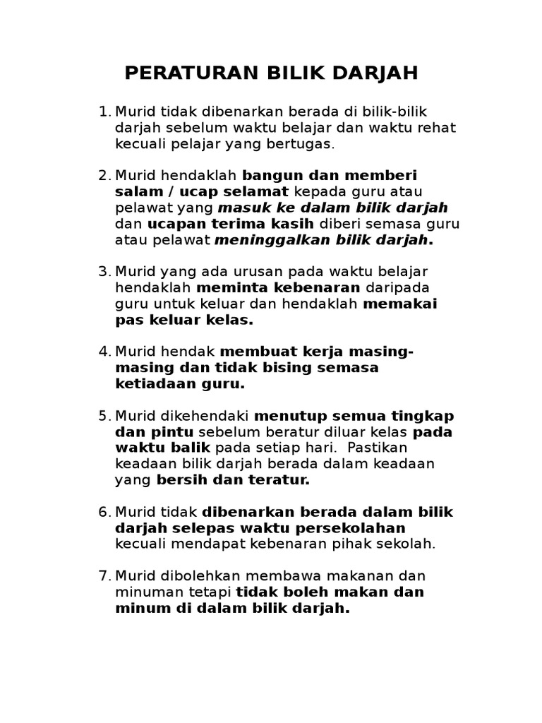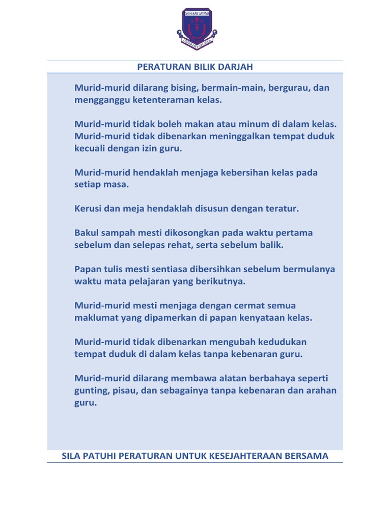 Peraturan Dalam Bilik Darjah 4sa Pdf
